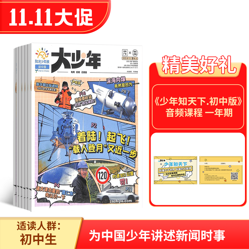 阳光少年报初中版《大少年》此商品为特殊商品,不能使用优惠卷且只能门店代收否则不予发货